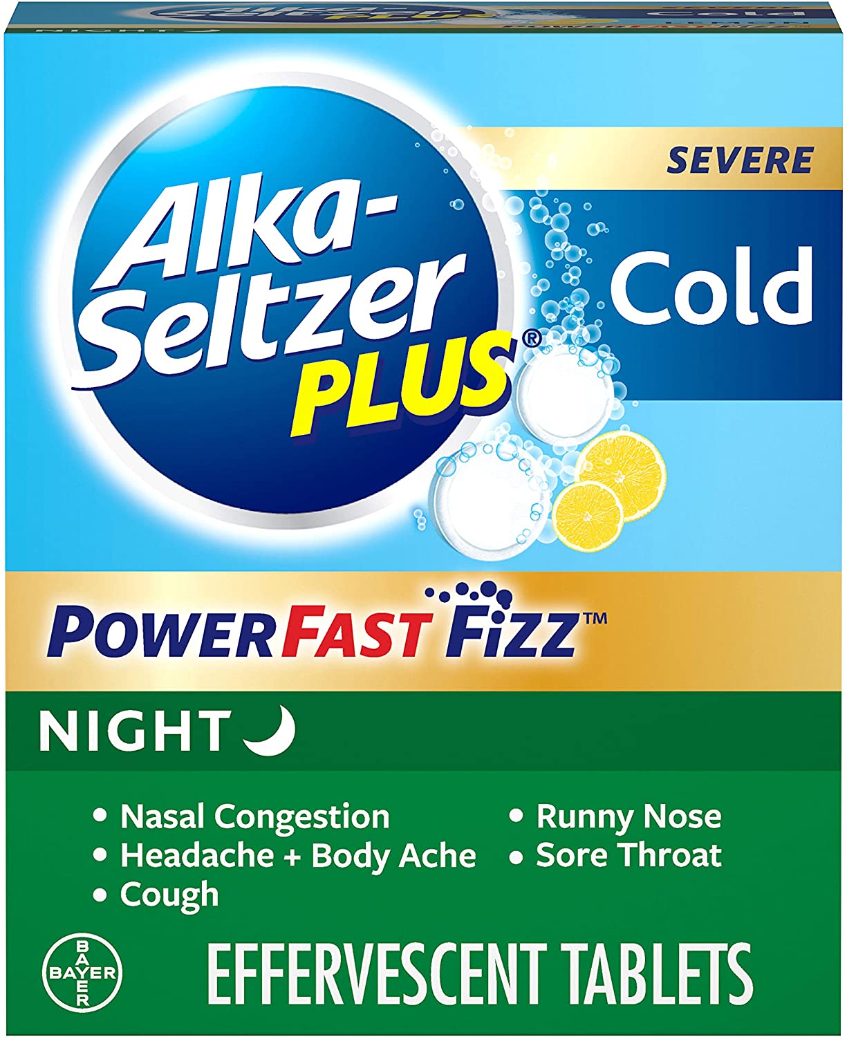 New & Improved Alka-Seltzer Plus Cold night effervescent Tablets dissolve quickly in hydrating water and are instantly ready to start working.