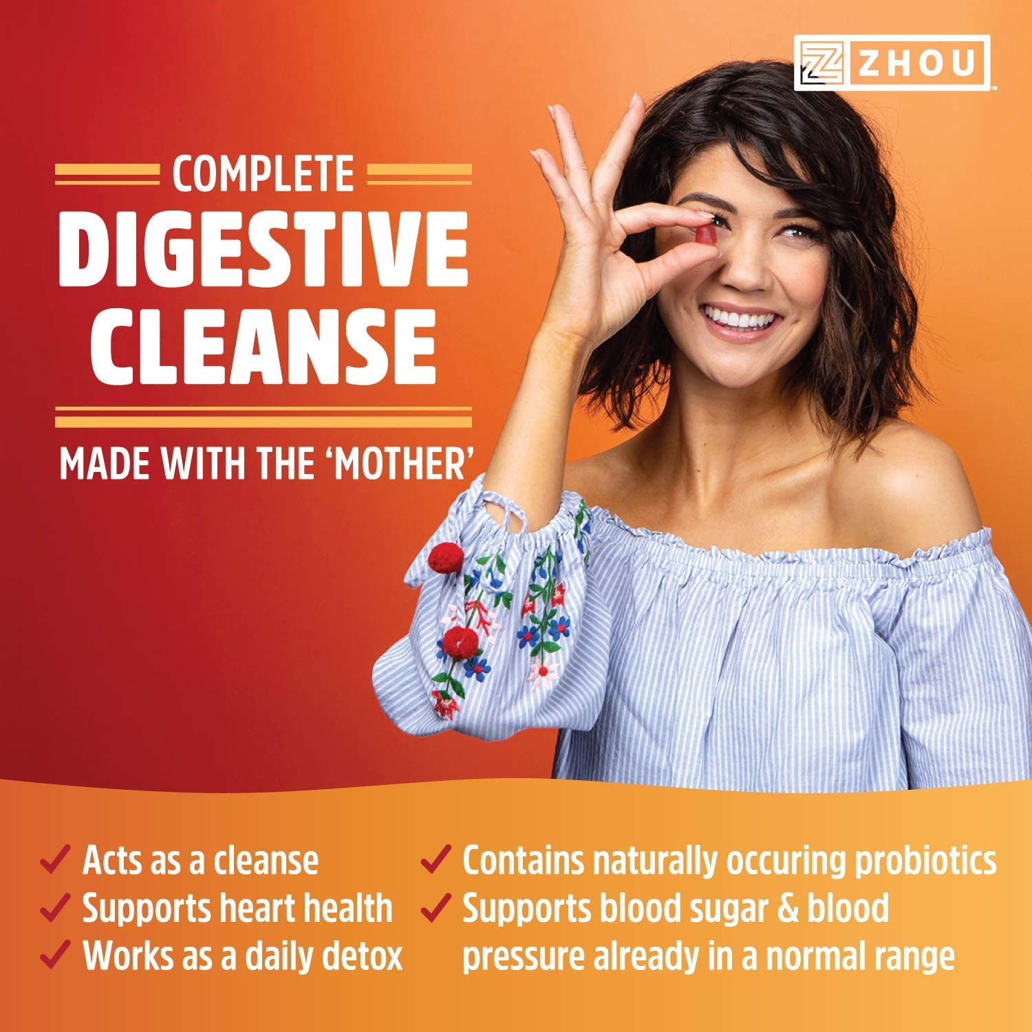When most people think of apple cider vinegar, they have mixed emotions. While they enjoy the must-have gut health benefits, they aren’t particularly fond of the potent, vinegary flavor. Luckily, Zhou created a powerful AND tasty formula that you’ll love. Our delicious harvest apple gummies, developed from natural flavors, are designed to give you a flavor you’ll crave and the benefits you’ll love all wrapped up in a delectable little chew.